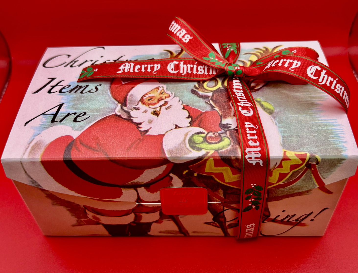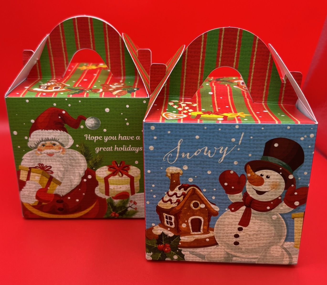 サンタクロースとスノーマンが描かれた可愛らしい小箱のプチギフトです。